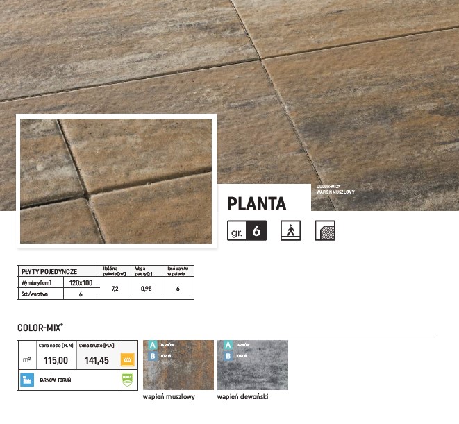 Płyta planta Ilość na palecie[m2] Waga palety[t]